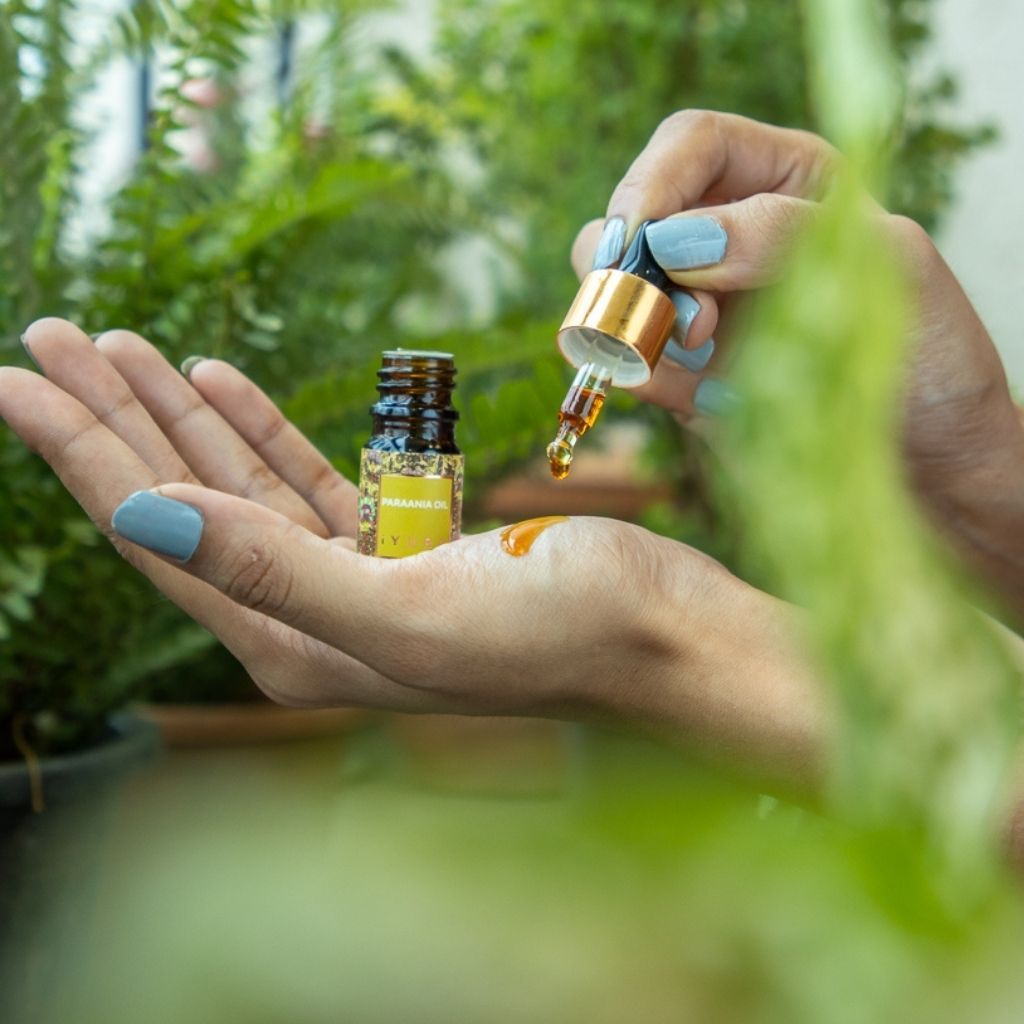 Se você tem pele oleosa, pode alternar dias: um dia Paraania, outro dia o óleo diurno. Cada óleo tem composição única e atua de forma sinérgica — a escolha depende do que sua pele precisa naquele dia.